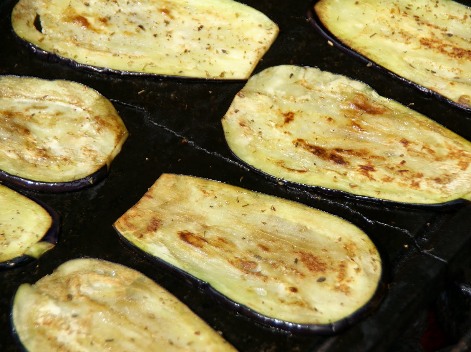 Gemüse der Länge nach mit der Brotschneidemaschine in 2mm dicke Scheiben schneiden. Auf einen Teller flach auflegen und jede Schicht ordentlich salzen. Mindestens eine Stunde stehen lassen. Die Teile lassen ordentlich Wasser. Dann abspülen, mit Küchenpapier trockentupfen. In eine Auflaufform legen, mit Olivenöl bestreichen und mit Gewürzen (Oregano oder Thymian oder Herb de Provence, oder was man mag) bestreuen, über Nacht marinieren. Am nächsten Tag über der Glut auf einem Rost oder einer Steinplatte (wie hier auf dem Bild) kurz auf beiden Seiten rösten. Eventuell nochmal mit etwas Olivenöl beträufeln. Schmeckt warm oder kalt vorzüglich. Solo oder mit Fleischbegeitung. Ein wunderbarer Sommerauftakt, der nach meinem Geschmack ganz oft wiederholt gehört!